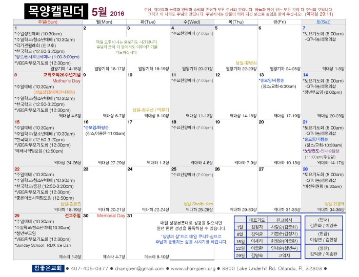 2016년 5월 목양 캘린더 페이지 정보 작성자 박도엽 댓글 0건 조회 2,085회 작성일 16-04-24 15:12 목록 본문 2016년 5월 목양 캘린더입니다. 댓글 0 댓글목록 등록된 댓글이 없습니다. 목록