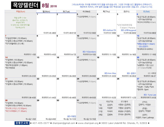 2016년 8월 목양 캘린더 페이지 정보 작성자 박도엽 댓글 0건 조회 2,079회 작성일 16-08-02 03:21 목록 본문 2016년 8월 목양 캘린더입니다. 댓글 0 댓글목록 등록된 댓글이 없습니다. 목록