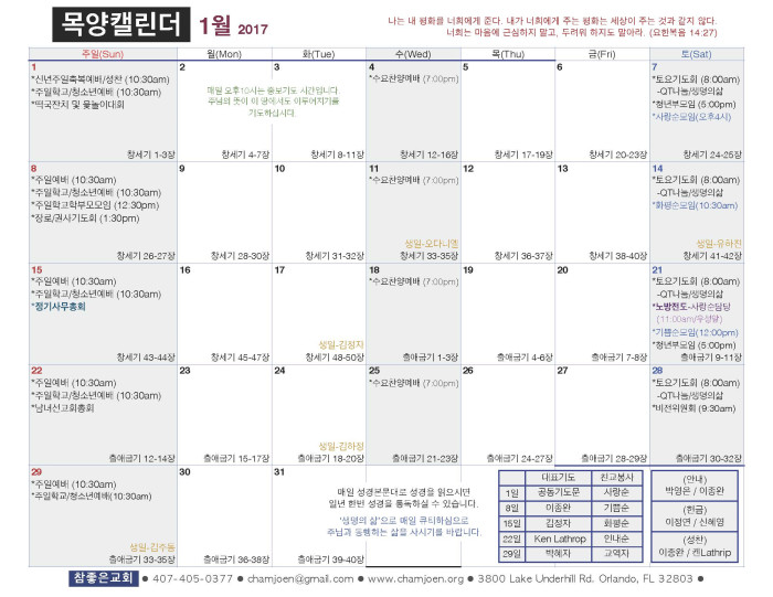 2017년 1월 목양 캘린더 페이지 정보 작성자 박도엽 댓글 0건 조회 1,895회 작성일 17-02-21 14:22 목록 본문 2017년 1월 목양 캘린더입니다. 댓글 0 댓글목록 등록된 댓글이 없습니다. 목록