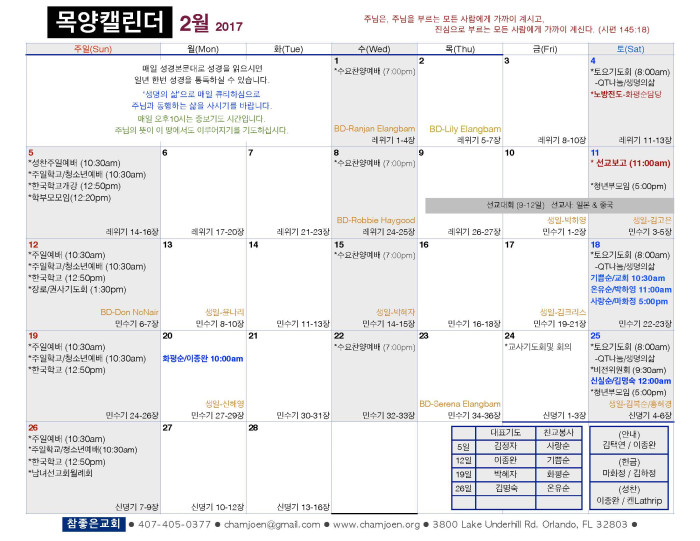 2017년 2월 목양 캘린더 페이지 정보 작성자 박도엽 댓글 0건 조회 1,904회 작성일 17-02-21 14:23 목록 본문 2017년 2월 목양 캘린더입니다. 댓글 0 댓글목록 등록된 댓글이 없습니다. 목록
