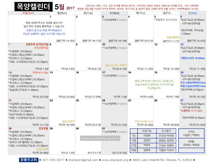 2017년 5월 목양 캘린더 페이지 정보 작성자 박도엽 댓글 0건 조회 2,106회 작성일 17-05-03 04:09 목록 본문 2017년 5월 목양 캘린더입니다. 댓글 0 댓글목록 등록된 댓글이 없습니다. 목록