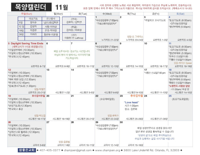 2017년 11월 목양 캘린더 페이지 정보 작성자 System Operator 댓글 0건 조회 1,866회 작성일 17-10-30 10:08 목록 본문 2017년 11월 목양 캘린더입니다. 댓글 0 댓글목록 등록된 댓글이 없습니다. 목록