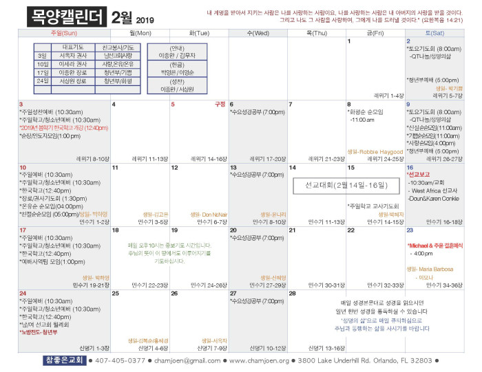 2019-02 목양 캘린더 페이지 정보 작성자 System Operator 댓글 0건 조회 1,982회 작성일 19-02-25 07:17 목록 본문 2019-02 목양 캘린더입니다. 댓글 0 댓글목록 등록된 댓글이 없습니다. 목록