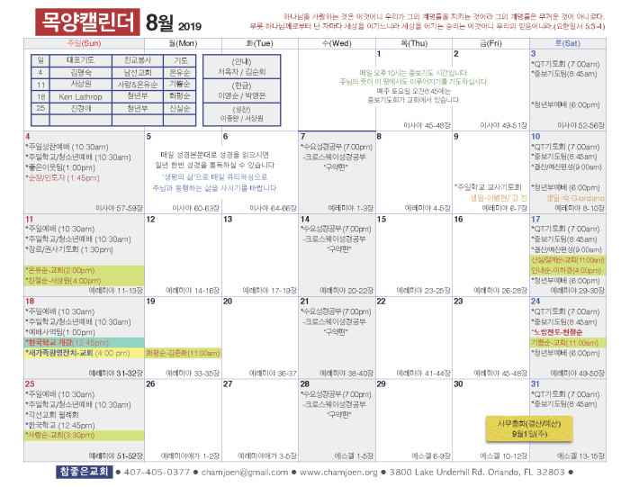 2019-08 목양 캘린더 페이지 정보 작성자 System Operator 댓글 0건 조회 1,833회 작성일 19-07-29 12:54 목록 본문 2019-08 목양 캘린더입니다. 댓글 0 댓글목록 등록된 댓글이 없습니다. 목록