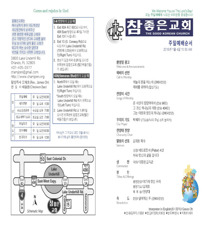 2015년 1월 01일 신년 축하예배 주보 페이지 정보 작성자 박도엽 댓글 0건 조회 2,448회 작성일 15-01-09 10:47 목록 본문 2015년 1월 1일 신년 축하예배 주보입니다. 댓글 0 댓글목록 등록된 댓글이 없습니다. 목록