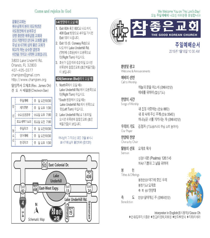 2015년 1월 18일 교회 주보 페이지 정보 작성자 박도엽 댓글 0건 조회 3,161회 작성일 15-01-25 10:29 목록 본문 2015년 1월 18일 교회 주보입니다. 댓글 0 댓글목록 등록된 댓글이 없습니다. 목록