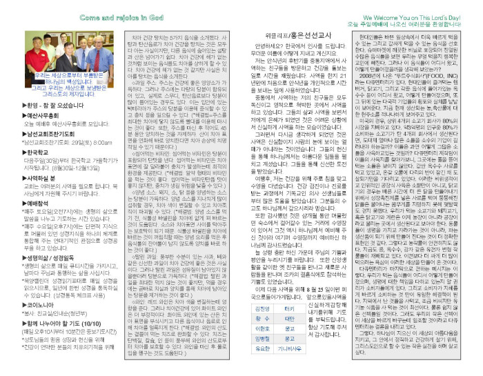 2015년 8월 23일 교회 주보 페이지 정보 작성자 박도엽 댓글 0건 조회 3,102회 작성일 15-08-24 14:26 목록 본문 2015년 8월 23일 교회 주보입니다. 댓글 0 댓글목록 등록된 댓글이 없습니다. 목록