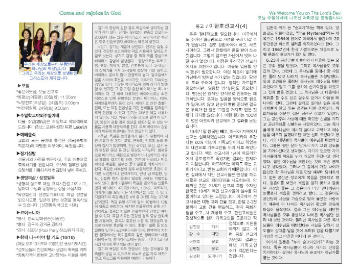 2015년 10월 18일 교회 주보 페이지 정보 작성자 박도엽 댓글 0건 조회 3,047회 작성일 15-10-25 09:54 목록 본문 2015년 10월 18일 교회 주보입니다. 댓글 0 댓글목록 등록된 댓글이 없습니다. 목록