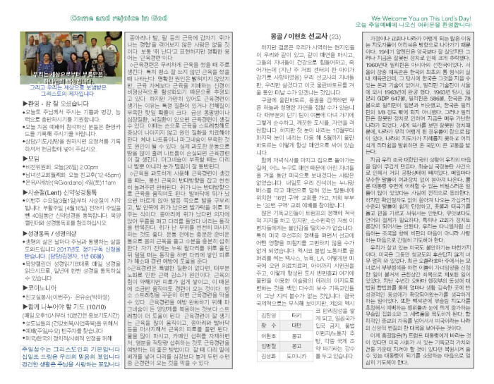 2017년 02월 26일 교회 주보 페이지 정보 작성자 박도엽 댓글 0건 조회 3,098회 작성일 17-02-27 08:50 목록 본문 2017년 02월 26일 교회 주보입니다. 댓글 0 댓글목록 등록된 댓글이 없습니다. 목록