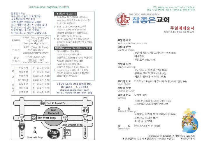 2017년 04월 23일 교회 주보 페이지 정보 작성자 박도엽 댓글 0건 조회 2,939회 작성일 17-04-23 10:47 목록 본문 2017년 04월 23일 교회 주보입니다. 댓글 0 댓글목록 등록된 댓글이 없습니다. 목록