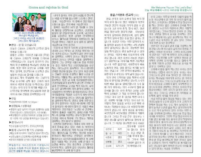 2017년 05월 07일 교회 주보 페이지 정보 작성자 박도엽 댓글 0건 조회 3,115회 작성일 17-05-09 00:54 목록 본문 2017년 5월 07일 교회 주보입니다. 댓글 0 댓글목록 등록된 댓글이 없습니다. 목록