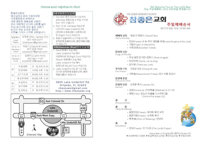2017년 08월 13일 교회 주보 페이지 정보 작성자 박도엽 댓글 0건 조회 3,074회 작성일 17-08-21 09:40 목록 본문 2017년 08월 13일 교회 주보입니다. 댓글 0 댓글목록 등록된 댓글이 없습니다. 목록