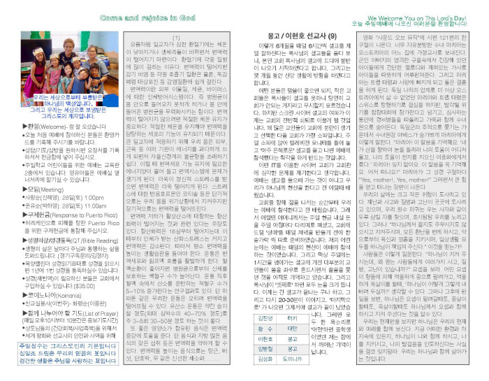 2017년 10월 22일 교회 주보 페이지 정보 작성자 System Operator 댓글 0건 조회 3,238회 작성일 17-10-29 11:22 목록 본문 2017년 10월 22일 교회 주보입니다. 댓글 0 댓글목록 등록된 댓글이 없습니다. 목록