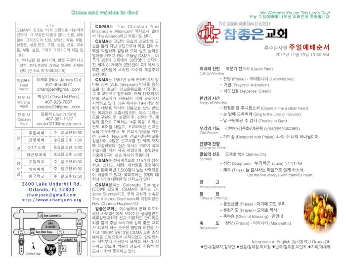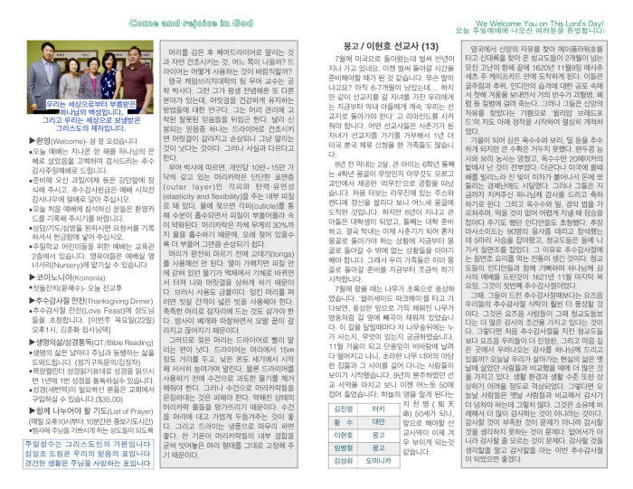 2017년 11월 19일 교회 주보 페이지 정보 작성자 System Operator 댓글 0건 조회 3,119회 작성일 17-11-20 12:44 목록 본문 2017년 11월 19일 교회 주보입니다. 댓글 0 댓글목록 등록된 댓글이 없습니다. 목록