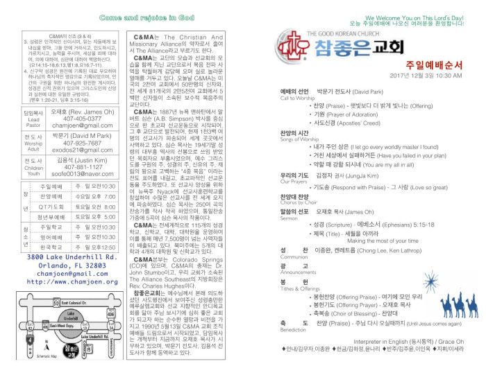 2017년 12월 03일 교회 주보 페이지 정보 작성자 System Operator 댓글 0건 조회 2,948회 작성일 17-12-03 15:12 목록 본문 2017년 12월 03일 교회 주보입니다. 댓글 0 댓글목록 등록된 댓글이 없습니다. 목록