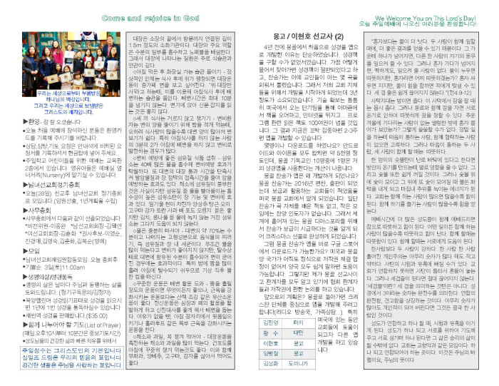 2018-01-28 교회 주보 페이지 정보 작성자 System Operator 댓글 0건 조회 3,238회 작성일 18-01-28 07:55 목록 본문 2018-01-28 교회 주보입니다. 댓글 0 댓글목록 등록된 댓글이 없습니다. 목록