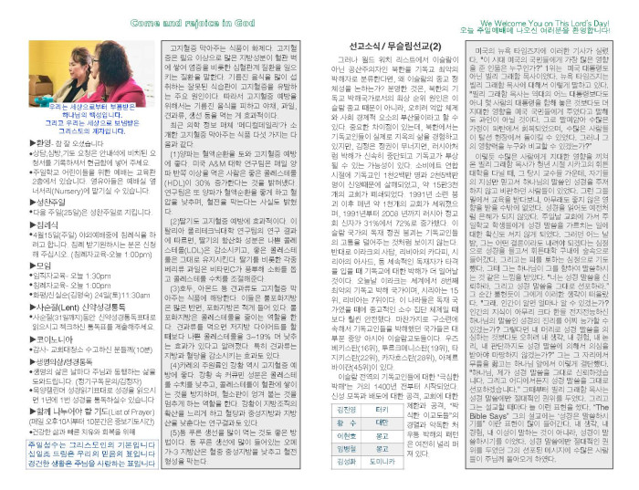 2018-03-18 교회 주보 페이지 정보 작성자 System Operator 댓글 0건 조회 3,117회 작성일 18-03-18 12:47 목록 본문 2018-03-18 교회 주보입니다. 댓글 0 댓글목록 등록된 댓글이 없습니다. 목록