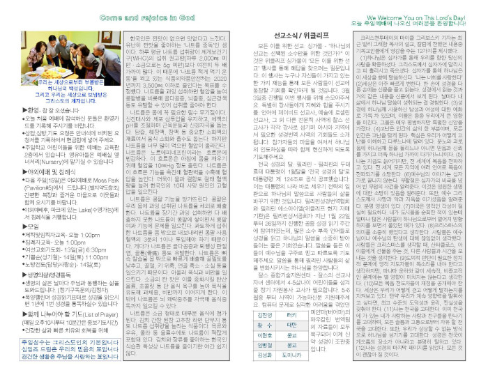 2018-04-08 교회 주보 페이지 정보 작성자 System Operator 댓글 0건 조회 3,170회 작성일 18-04-09 11:46 목록 본문 2018-04-08 교회 주보입니다. 댓글 0 댓글목록 등록된 댓글이 없습니다. 목록