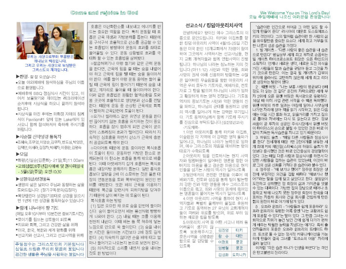 2018-04-15 교회 주보 페이지 정보 작성자 System Operator 댓글 0건 조회 3,052회 작성일 18-04-15 12:36 목록 본문 2018-04-15 교회 주보입니다. 댓글 0 댓글목록 등록된 댓글이 없습니다. 목록