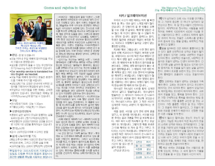 2018-05-13 교회 주보 페이지 정보 작성자 System Operator 댓글 0건 조회 3,074회 작성일 18-05-14 11:48 목록 본문 2018-05-13 교회 주보입니다. 댓글 0 댓글목록 등록된 댓글이 없습니다. 목록