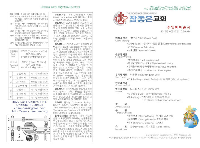 2018-06-10 교회 주보 페이지 정보 작성자 System Operator 댓글 0건 조회 3,099회 작성일 18-06-15 11:12 목록 본문 2018-06-10 교회 주보입니다. 댓글 0 댓글목록 등록된 댓글이 없습니다. 목록