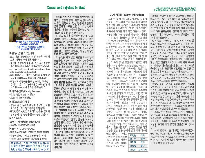 2018-06-24 교회 주보 페이지 정보 작성자 System Operator 댓글 0건 조회 3,174회 작성일 18-06-27 08:11 목록 본문 2018-06-24 교회 주보입니다. 댓글 0 댓글목록 등록된 댓글이 없습니다. 목록