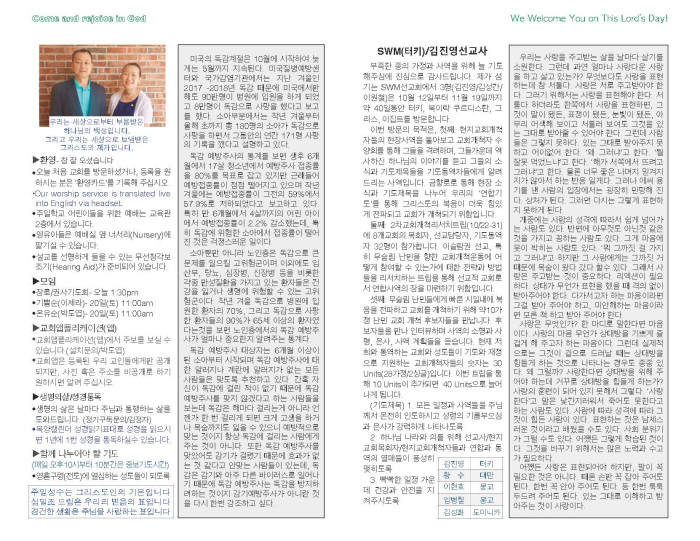 2018-10-14 교회 주보 페이지 정보 작성자 System Operator 댓글 0건 조회 3,004회 작성일 18-10-14 10:20 목록 본문 2018-10-14 교회 주보입니다. 댓글 0 댓글목록 등록된 댓글이 없습니다. 목록