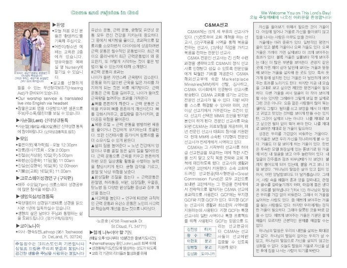 2019-03-10 교회 주보 페이지 정보 작성자 System Operator 댓글 0건 조회 2,990회 작성일 19-03-11 11:31 목록 본문 2019-03-10 교회 주보입니다. 댓글 0 댓글목록 등록된 댓글이 없습니다. 목록