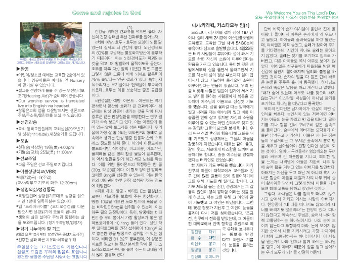 2019-05-19 교회 주보 페이지 정보 작성자 System Operator 댓글 0건 조회 2,913회 작성일 19-05-19 10:15 목록 본문 2019-05-19 교회 주보입니다. 댓글 0 댓글목록 등록된 댓글이 없습니다. 목록