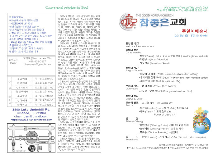 2019-08-18 교회 주보 페이지 정보 작성자 System Operator 댓글 0건 조회 3,242회 작성일 19-08-19 10:31 목록 본문 2019-08-18 교회 주보입니다. 댓글 0 댓글목록 등록된 댓글이 없습니다. 목록