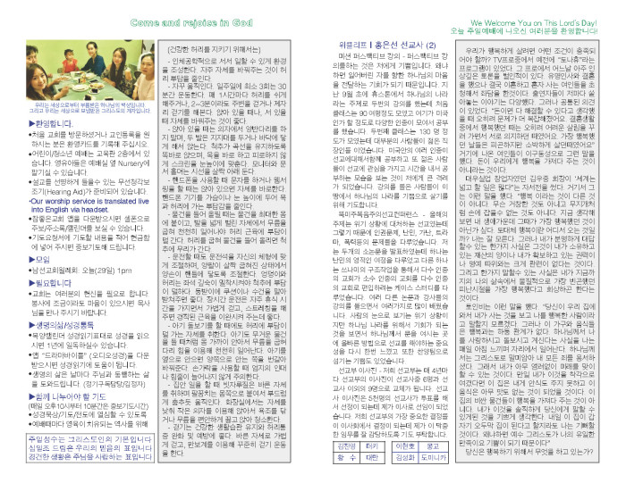 2019-09-29 교회 주보 페이지 정보 작성자 System Operator 댓글 0건 조회 2,917회 작성일 19-09-29 02:24 목록 본문 2019-09-29 교회 주보입니다. 댓글 0 댓글목록 등록된 댓글이 없습니다. 목록