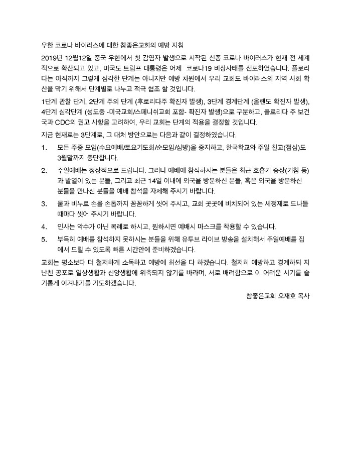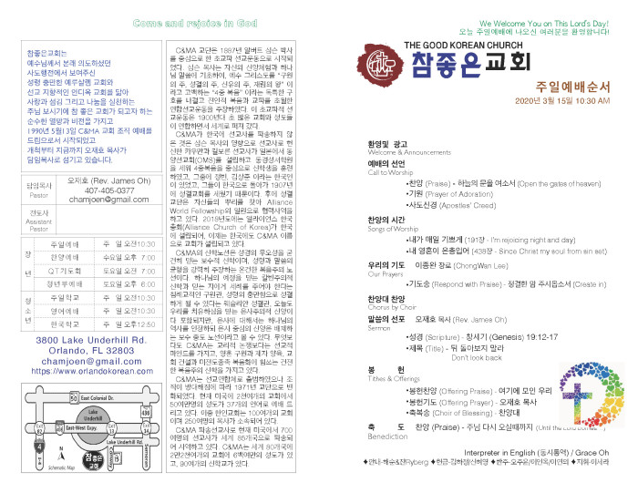 2020-03-15 예배 주보 페이지 정보 작성자 System Operator 댓글 0건 조회 2,107회 작성일 20-03-15 13:07 목록 본문 2020-03-16 예배 주보입니다. 댓글 0 댓글목록 등록된 댓글이 없습니다. 목록