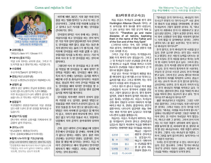 2014년 7월 20일 교회 주보 페이지 정보 작성자 박도엽 댓글 0건 조회 3,272회 작성일 14-07-21 11:52 목록 본문 2014년 7월 20일 교회 주보입니다. 댓글 0 댓글목록 등록된 댓글이 없습니다. 목록