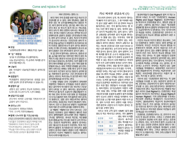 2014년 9월 21일 교회 주보 페이지 정보 작성자 박도엽 댓글 0건 조회 3,066회 작성일 14-09-24 10:32 목록 본문 2014년 9월 21일 교회 주보입니다. 댓글 0 댓글목록 등록된 댓글이 없습니다. 목록