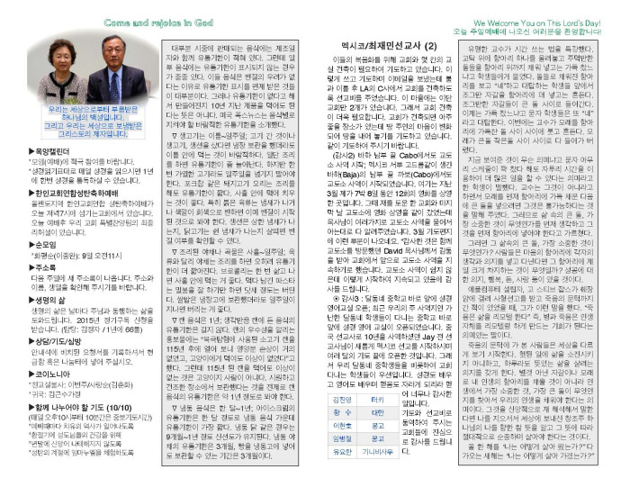 2014년 12월 07일 교회 주보 페이지 정보 작성자 박도엽 댓글 0건 조회 3,247회 작성일 14-12-13 16:11 목록 본문 2014년 12월 07일 교회 주보입니다. 댓글 0 댓글목록 등록된 댓글이 없습니다. 목록