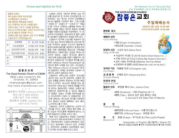 2025-03-16 참좋은 교회 주보 페이지 정보 작성자 참좋은교회 댓글 0건 조회 1,590회 작성일 25-03-16 17:49 목록 본문 2025-03-16 참좋은 교회 주보입니다. 이전글2025-03-23 참좋은 교회 주보 25.03.23 다음글2025-03-09 참좋은 교회 주보 25.03.09 댓글 0 댓글목록 등록된 댓글이 없습니다. 목록