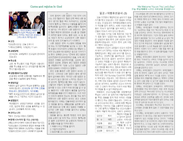 2015년 12월 06일 교회 주보 페이지 정보 작성자 박도엽 댓글 0건 조회 5,528회 작성일 15-12-06 08:59 목록 본문 2015년 12월 06일 교회 주보입니다. 이전글2015년 12월 13일 교회 주보 15.12.23 다음글2015년 11월 29일 교회 주보 15.12.06 댓글 0 댓글목록 등록된 댓글이 없습니다. 목록