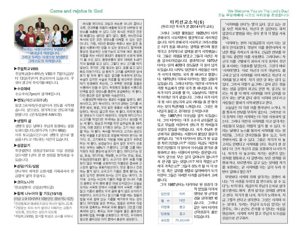 2014년 6월 29일 교회 주보 페이지 정보 작성자 박도엽 댓글 0건 조회 5,642회 작성일 14-07-09 13:10 목록 본문 2014년 6월 29일 교회 주보입니다. 이전글2014년 7월 06일 교회 주보 14.07.09 다음글2014년 6월 22일 교회 주보 14.07.09 댓글 0 댓글목록 등록된 댓글이 없습니다. 목록