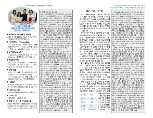 2014년 6월 08일 교회 주보 페이지 정보 작성자 박도엽 댓글 0건 조회 5,593회 작성일 14-06-12 05:48 목록 본문 2014년 6월 08일 교회 주보입니다. 이전글2014년 6월 15일 교회 주보 14.06.18 다음글2014년 6월 01일 교회 주보 14.06.02 댓글 0 댓글목록 등록된 댓글이 없습니다. 목록