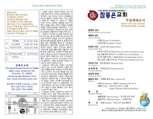 2024-11-17 참좋은 교회 주보 페이지 정보 작성자 참좋은교회 댓글 0건 조회 3,560회 작성일 24-11-18 07:05 목록 본문 2024-11-17 참좋은 교회 주보입니다. 이전글2024-11-24 참좋은 교회 주보 24.11.24 다음글2024-11-10 참좋은 교회 주보 24.11.10 댓글 0 댓글목록 등록된 댓글이 없습니다. 목록