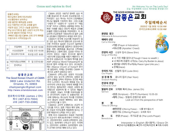2025-01-26 참좋은 교회 주보 페이지 정보 작성자 참좋은교회 댓글 0건 조회 2,264회 작성일 25-01-26 16:20 목록 본문 2025-01-26 참좋은 교회 주보입니다. 이전글2025-02-02 참좋은 교회 주보 25.02.02 다음글2025-01-19 참좋은 교회 주보 25.01.19 댓글 0 댓글목록 등록된 댓글이 없습니다. 목록