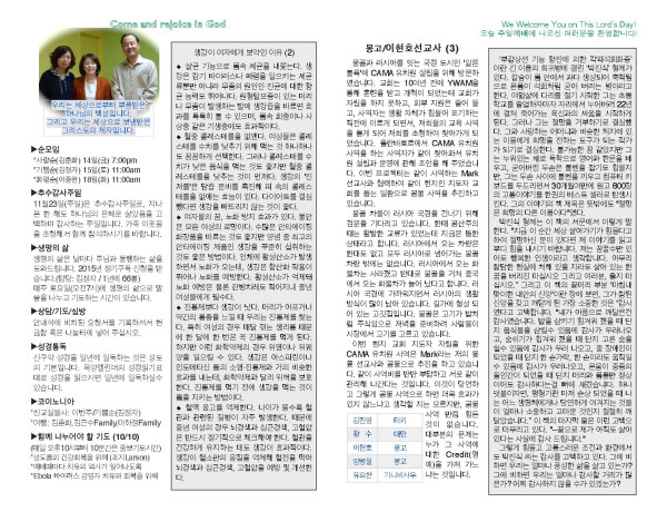 2014년 11월 09일 교회 주보 페이지 정보 작성자 박도엽 댓글 0건 조회 6,003회 작성일 14-11-09 10:59 목록 본문 2014년 11월 09일 교회 주보입니다. 이전글2014년 11월 16일 교회 주보 14.11.18 다음글2014년 11월 02일 교회 주보 14.11.09 댓글 0 댓글목록 등록된 댓글이 없습니다. 목록