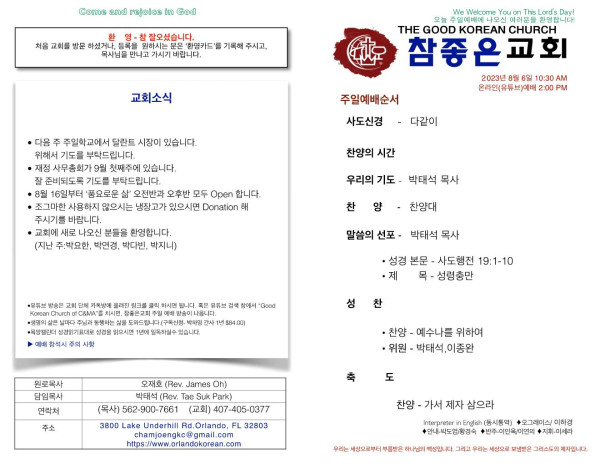 2023-08-06 참좋은 교회 주보 페이지 정보 작성자 참좋은교회 댓글 0건 조회 4,377회 작성일 23-08-13 18:30 목록 본문 2023-08-06 참좋은 교회 주보입니다. 이전글2023-08-13 참좋은 교회 주보 23.08.13 다음글2023-07-30 참좋은 교회 주보 23.08.05 댓글 0 댓글목록 등록된 댓글이 없습니다. 목록