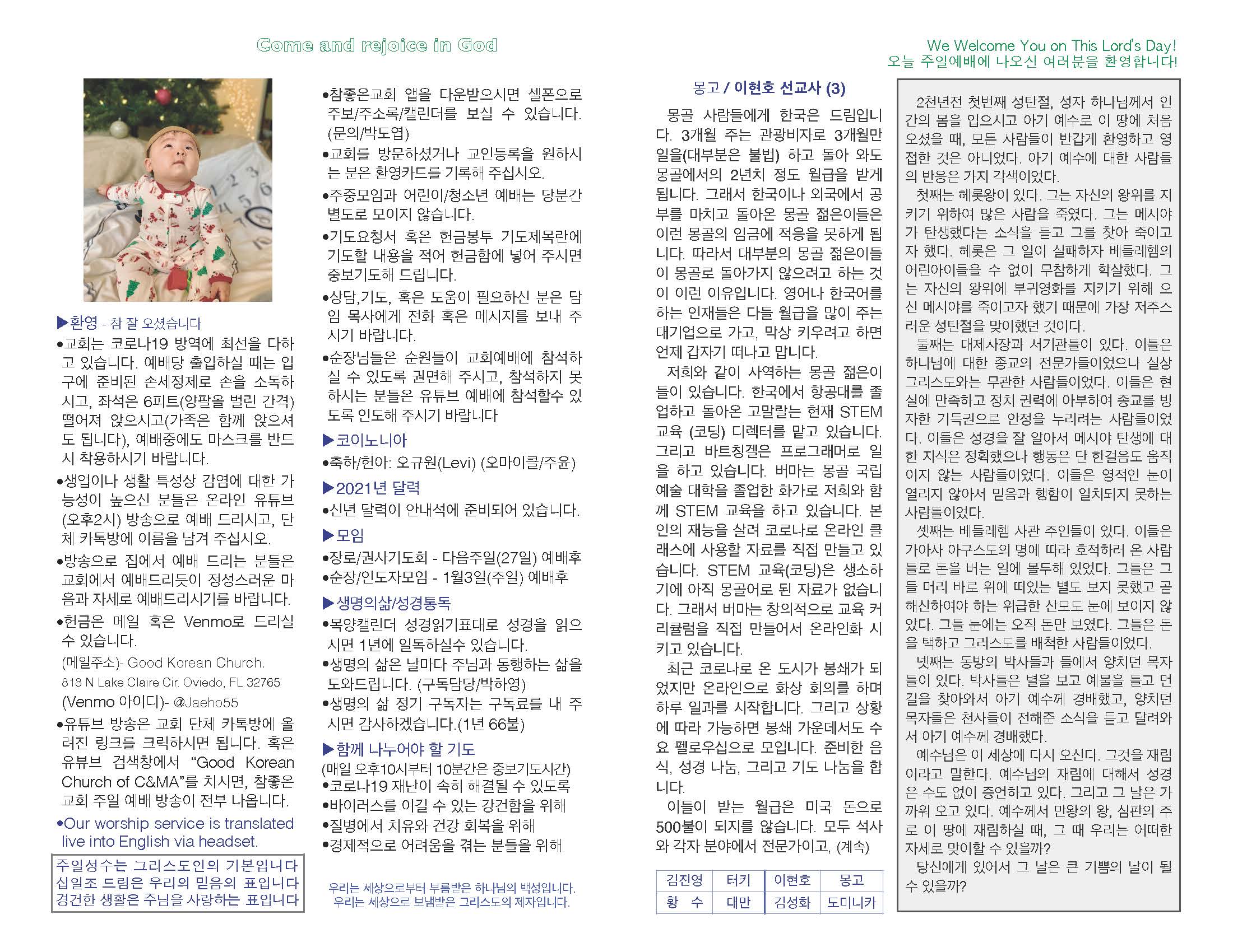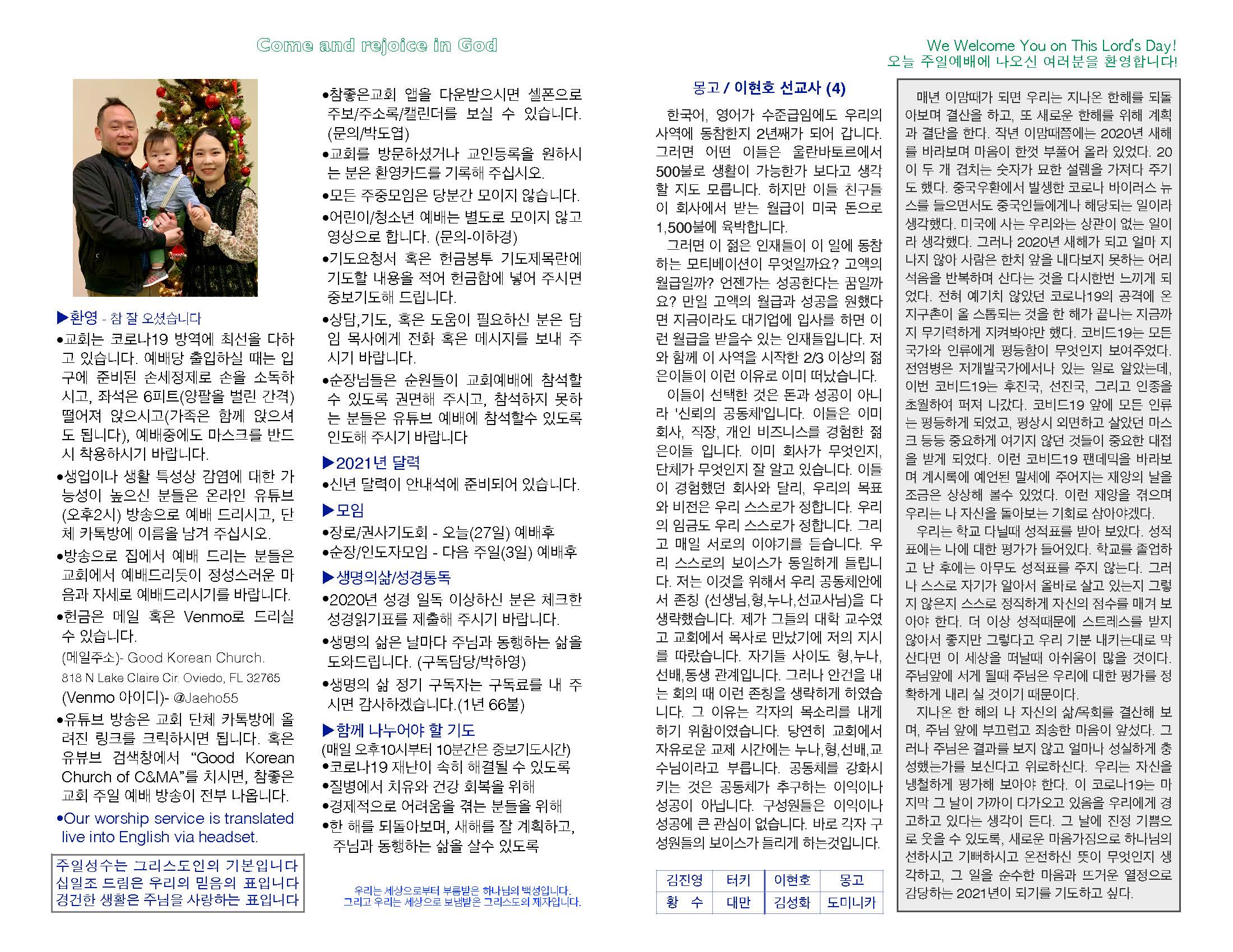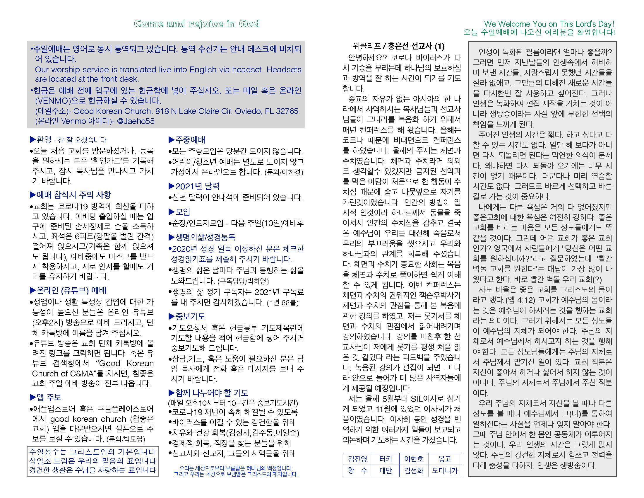 THE Good Korean Church of C&MA 3800 Lake Underhill Rd. Orlando.FL32803 / Tel: