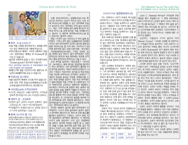 2020-03-22 예배 주보 페이지 정보 작성자 System Operator 댓글 0건 조회 3,319회 작성일 20-03-23 10:50 목록 본문 2020-03-22 예배 주보입니다. 이전글2020-12-06 예배 주보 20.12.07 다음글2020-03-15 예배 주보 20.03.15 댓글 0 댓글목록 등록된 댓글이 없습니다. 목록
