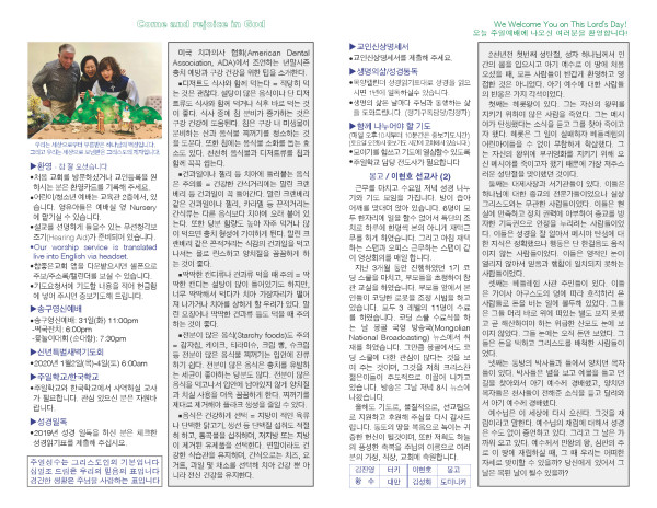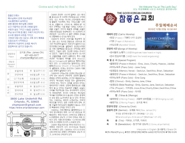 2019-12-22 교회 주보 페이지 정보 작성자 System Operator 댓글 0건 조회 5,831회 작성일 19-12-23 09:35 목록 본문 2019-12-22 교회 주보입니다. 이전글2019-12-29 교회 주보 20.01.02 다음글2019-12-15 교회 주보 19.12.18 댓글 0 댓글목록 등록된 댓글이 없습니다. 목록