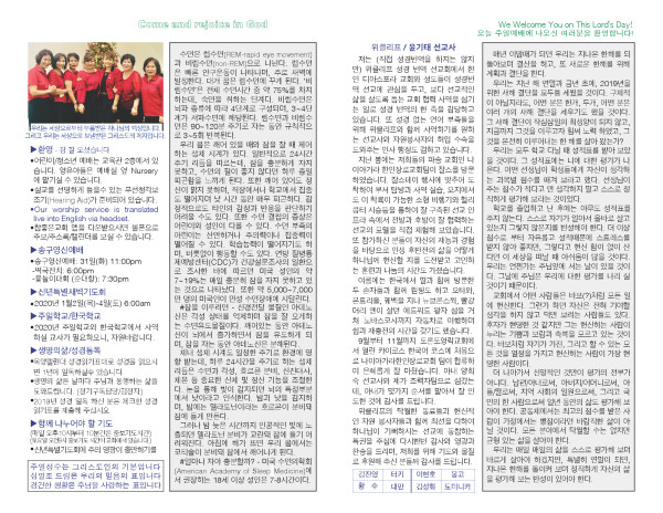 2019-12-29 교회 주보 페이지 정보 작성자 System Operator 댓글 0건 조회 5,822회 작성일 20-01-02 11:26 목록 본문 2019-12-29 교회 주보입니다. 이전글2019-12-31 송구영신 예배 20.01.05 다음글2019-12-22 교회 주보 19.12.23 댓글 0 댓글목록 등록된 댓글이 없습니다. 목록