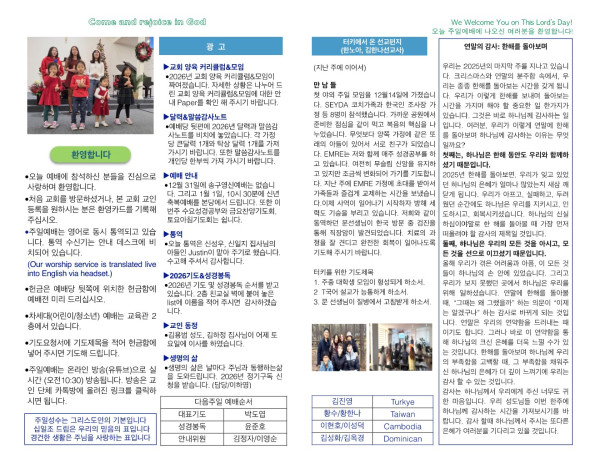 2025-12-28 참좋은 교회 주보 페이지 정보 작성자 참좋은교회 댓글 0건 조회 22회 작성일 25-12-28 19:30 목록 본문 2025-12-28 참좋은 교회 주보입니다. 다음글2025-12-21 참좋은 교회 주보 25.12.21 댓글 0 댓글목록 등록된 댓글이 없습니다. 목록