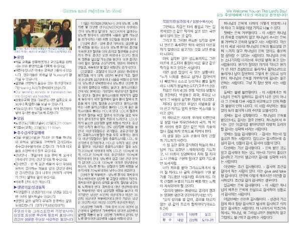 2019-11-17 교회 주보 페이지 정보 작성자 System Operator 댓글 0건 조회 5,761회 작성일 19-11-18 11:37 목록 본문 2019-11-17 교회 주보입니다. 이전글2019-11-24 교회 주보 19.12.01 다음글2019-11-10 교회 주보 19.11.18 댓글 0 댓글목록 등록된 댓글이 없습니다. 목록