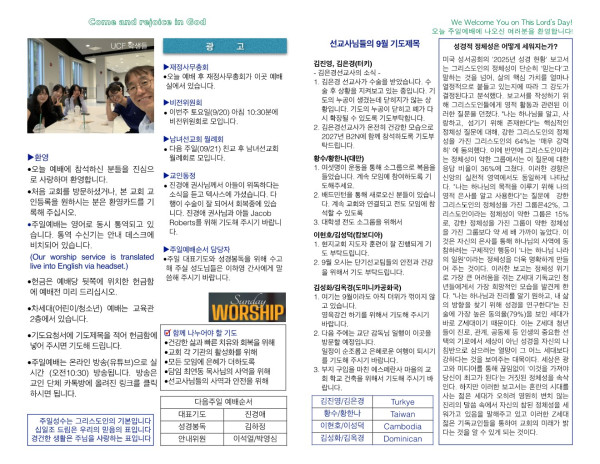 2025-09-14 참좋은 교회 주보 페이지 정보 작성자 참좋은교회 댓글 0건 조회 681회 작성일 25-09-14 17:15 목록 본문 2025-09-14 참좋은 교회 주보입니다. 이전글2025-09-21 참좋은 교회 주보 25.09.21 다음글2025-09-07 참좋은 교회 주보 25.09.07 댓글 0 댓글목록 등록된 댓글이 없습니다. 목록